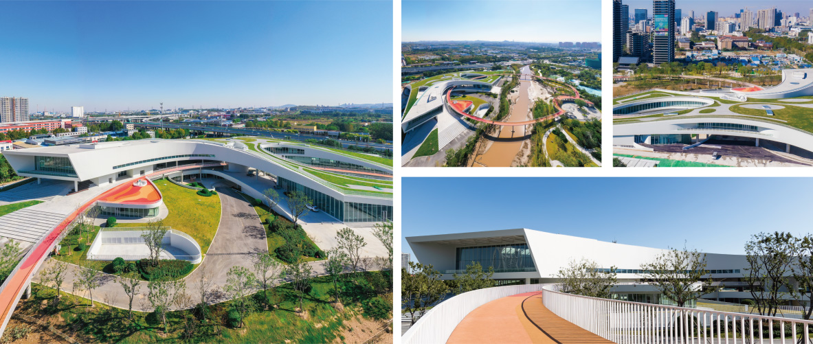 The project is located in the high-tech zone of Zibo City, Shandong Province, with a total construction area of 25,000 square meters, the largest single-span fish-belly box beam, the largest span is 50 meters, the largest weight of a single piece is 109.5 tons, the largest box component web height is 3.6 meters, the width of the wing is 0.9 meters, the maximum thickness of the wing is 70mm, the overall performance is a very tense horn shape. The building form is a landscape architecture, the building roof is covered with green, the building and the park are integrated, the building is equipped with children's swimming pool, basketball court, gym, study, cultural center, etc.